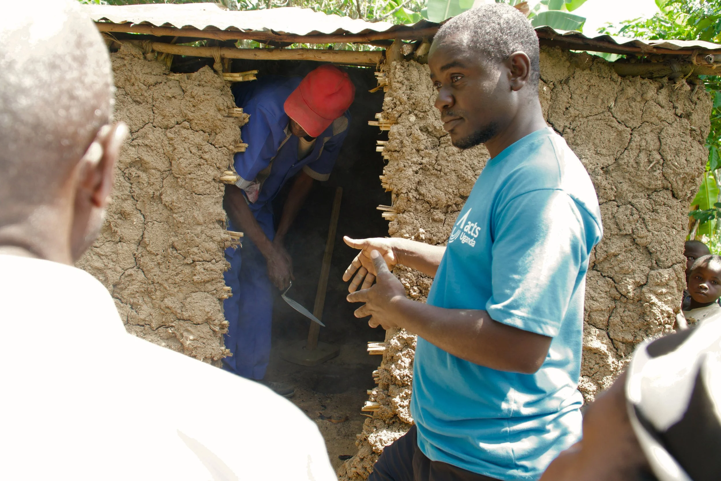 Above: Ronnie Musoke, WASH mobilizer with ACTS Uganda, leads a latrine pit floor workshop in Ruhara Hill, Uganda