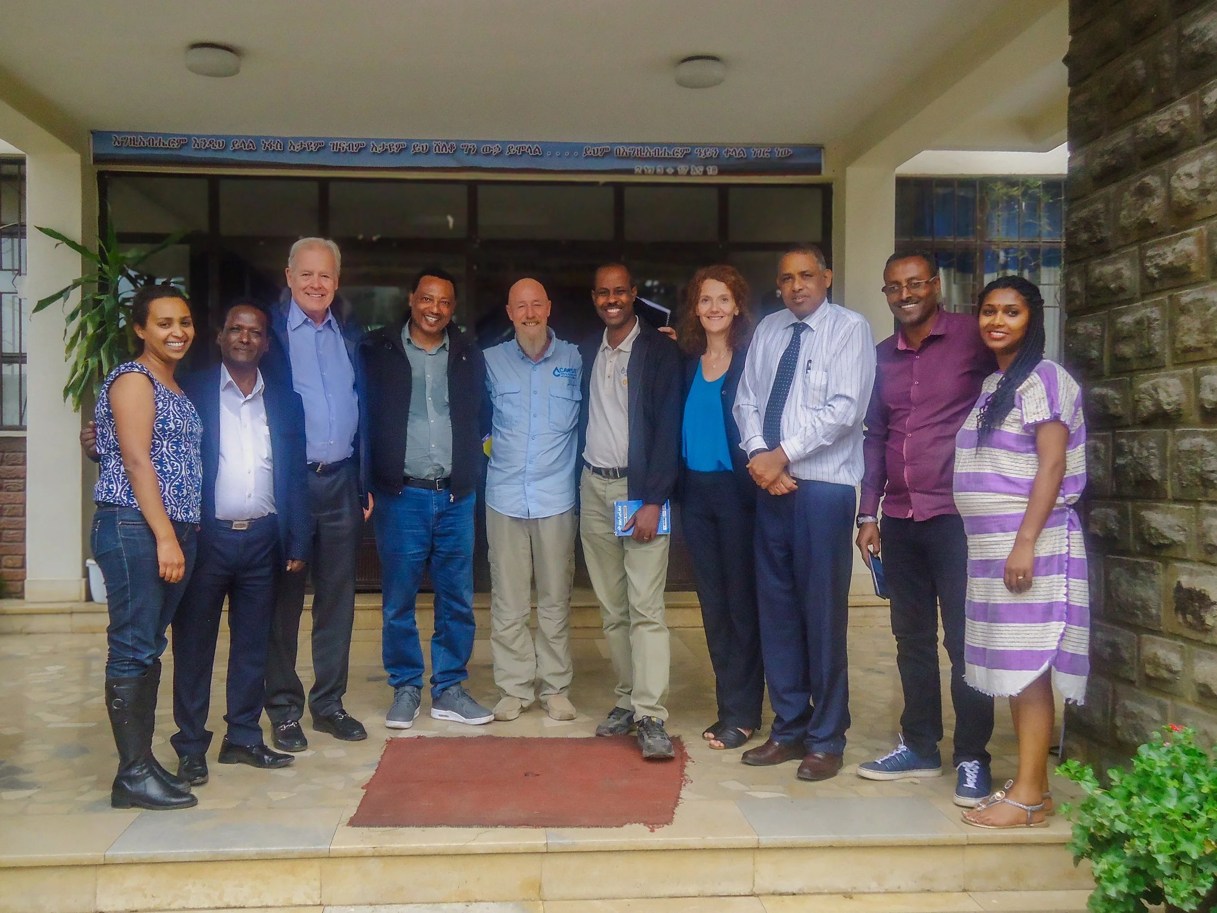 David O’Brien, CAWST Chairman, Shauna Curry, President and CEO of CAWST, and Tal with the staff at The Ethiopian Kale Hiwot Church Humanitarian Aid and Development Commission (EKHCDC) in Ethiopia.