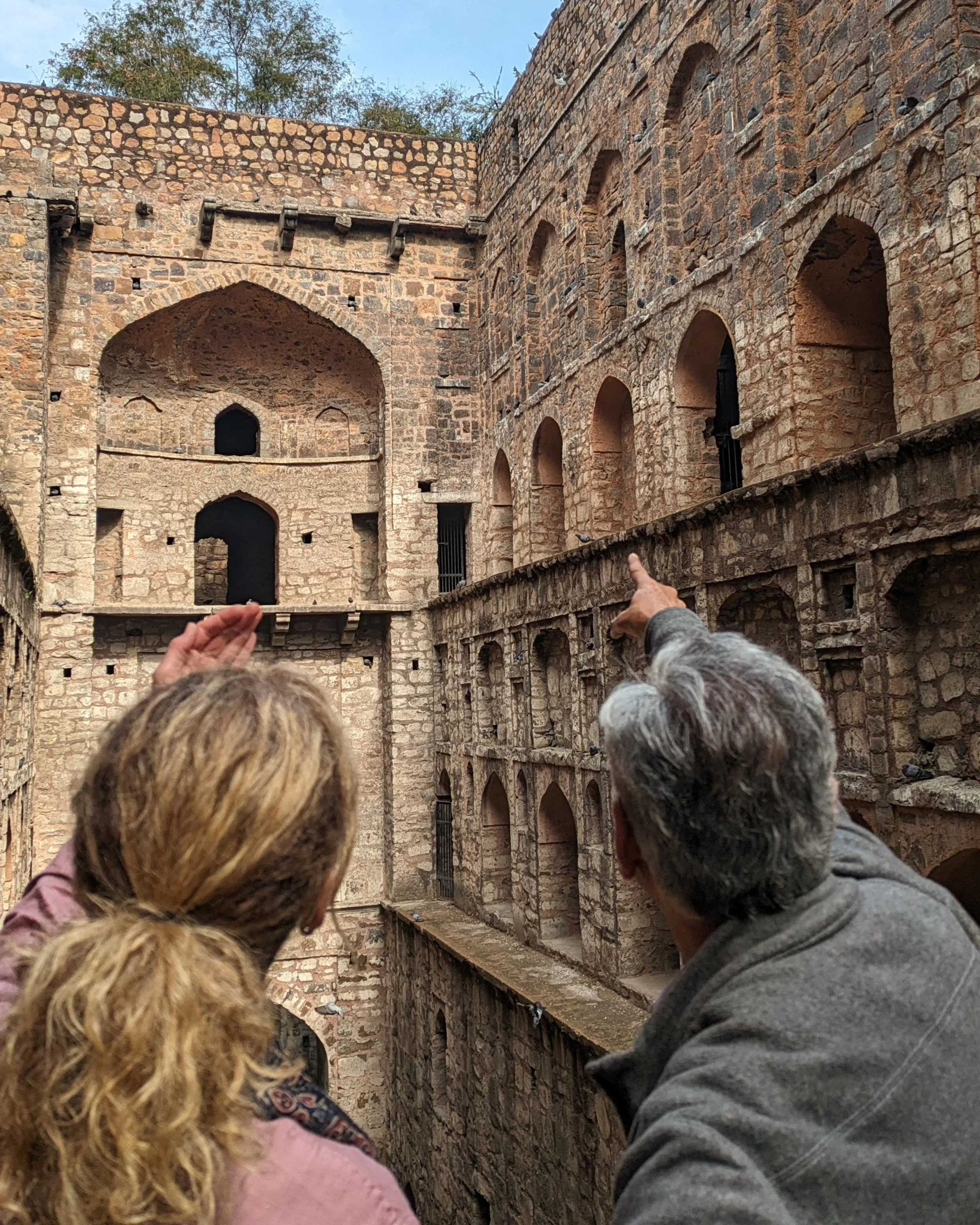 Shauna Curry, President & CEO of CAWST: The first step-wells in India date back to 550AD. In the photo below, Lalit is showing the three of us (Suneel, Dan and me) the Agrasen Baoli step-well in Delhi, refurbished at least twice—once in the 14th century and once more recently.